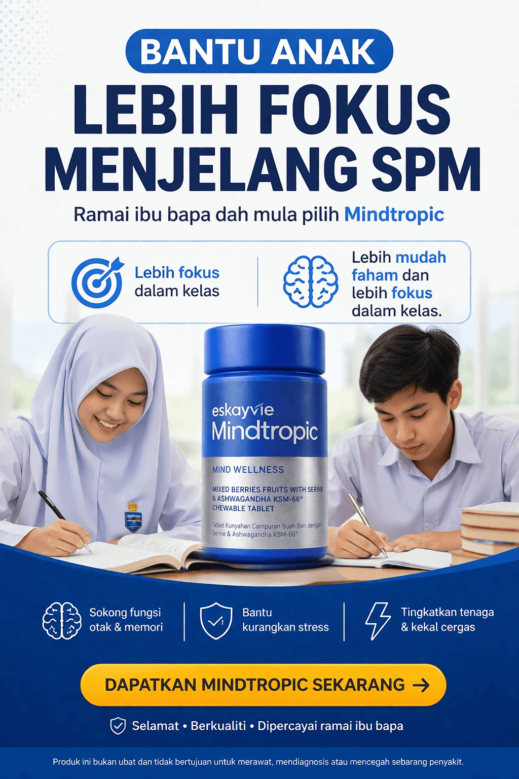 MINDTROPIC bantu tingkatkan fokus, kuatkan ingatan dan cepatkan proses belajar untuk pelajar seawal 30 hari